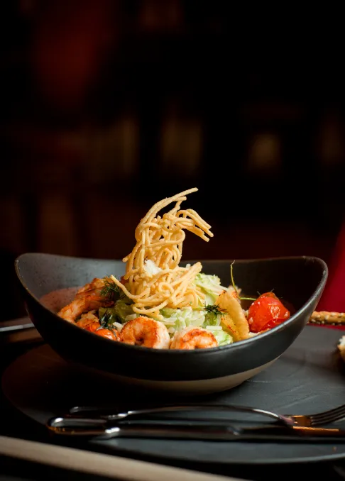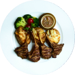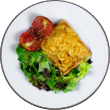 Grilled chicken, romaine lettuce, Caesar dressing, croutons, Parmesan