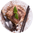 Mascarpone cheese, espresso, ladyfingers, cocoa powder, sugar, eggs