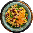 Quinoa, chickpeas, cucumber, red onion, feta, lemon dressing