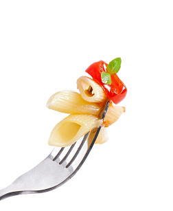 Pasta, mixed vegetables (zucchini, tomatoes, bell peppers), olive oil, garlic, Parmesan